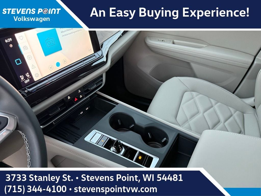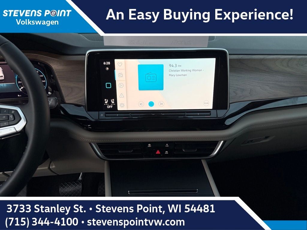 - MIB3 Composition Media -inc: 12" touchscreen multi-function center display, AM/FM/HD radio and WMA/MP3/FLAC player w/USB-C input, voice control, SiriusXM w/360L (w/3-month free trial subscription; 360L services require acceptance of SiriusXM terms), 6-speaker sound system, Bluetooth® connectivity (for compatible devices), capability for in-vehicle 4G LTE enabled Wi-Fi (cellular data plan required; includes limited trial), capability for connected vehicle services (capabilities for services vary; requires enrollment or subscription), App-Connect smartphone integration (w/Apple CarPlay, Android Auto and MirrorLink) via USB, wireless App-Connect smartphone integration (for compatible devices) w/multi-phone pairing capability and Qi wireless inductive charger up to 15W (for compatible mobile phones and accessories) in front row All connected vehicle services subject to terms and limitations. Some services, which include emergency assistance services, require a paid subscription. See dealer or vw.com/connected for important details.