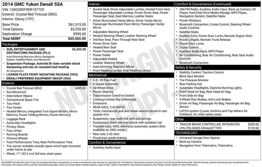 - Vehicle Name: GMC Yukon