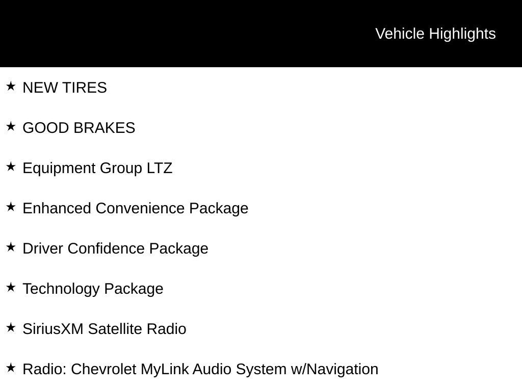 - Bluetooth for phone personal cell phone connectivity to vehicle audio system and HMI (Human Machine Interface) (Upgraded to Chevrolet MyLink radio with Bluetooth streaming audio for music and select phones.)