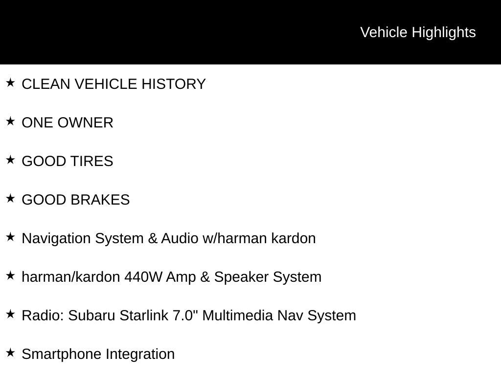 - Radio: Subaru Starlink 7.0 Multimedia Nav System