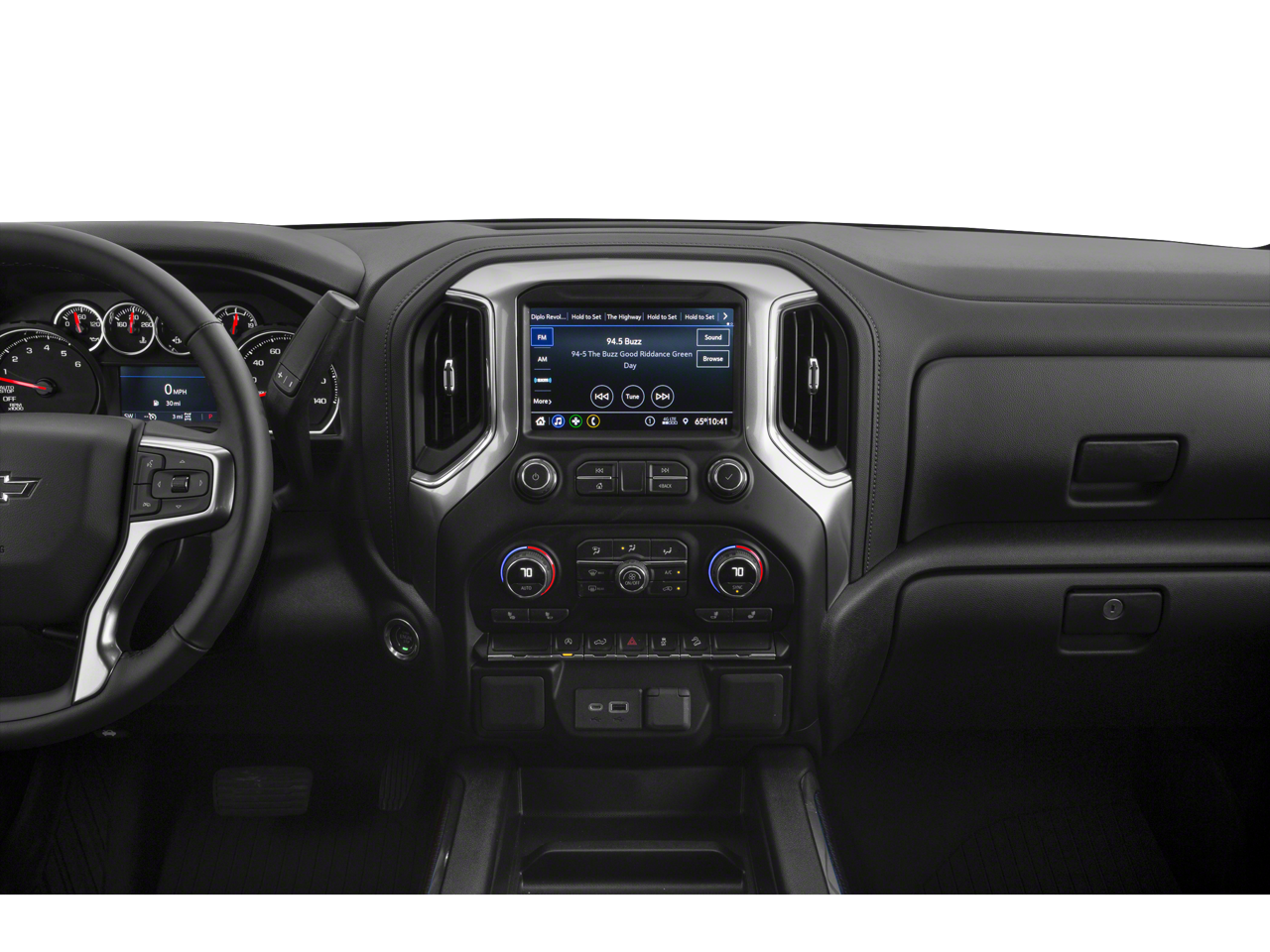 - Audio system, Chevrolet Infotainment 3 system 8" diagonal color touchscreen, AM/FM stereo. Additional features for compatible phones include: Bluetooth audio streaming for 2 active devices, voice command pass-through to phone, wired Apple CarPlay and Android Auto capable.