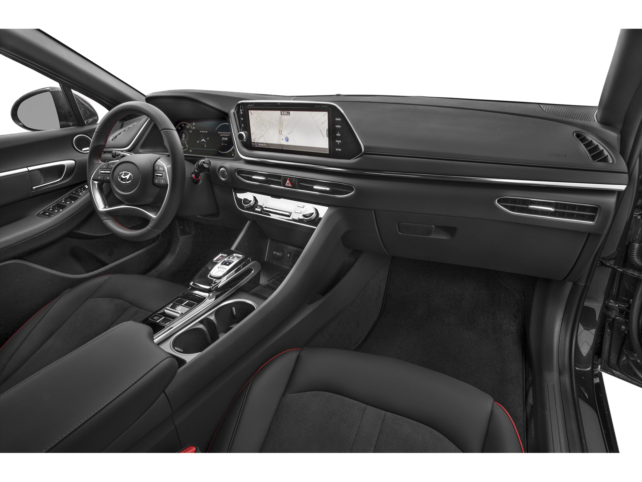 - Radio: AM/FM/MP3/HD/SiriusXM Display Audio w/Nav -inc: 10.25" color touchscreen, Bose premium audio w/12 speakers (1 center channel, 2 dash, 2 front tweeters, 4 door mounted, 2 rear mounted speakers plus 1 rear mounted subwoofer), dynamic voice recognition, integrated Bluetooth, Blue Link connected car system, Apple CarPlay, Android Auto, USB, diversity antenna for navigation and HERE HD traffic