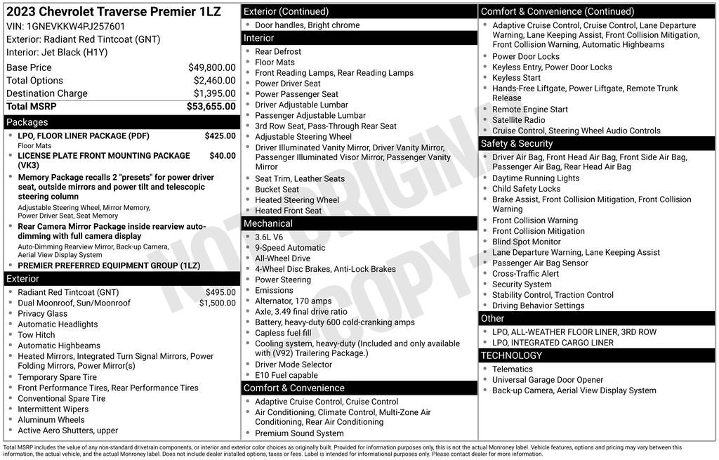 - Vehicle Name: Chevrolet Traverse