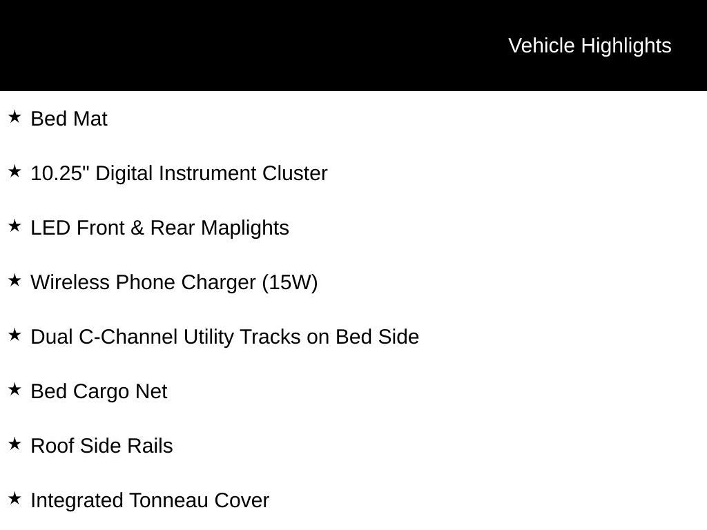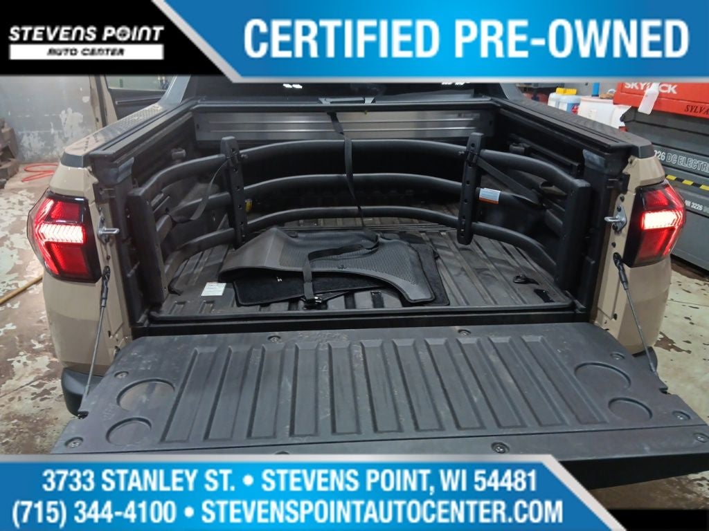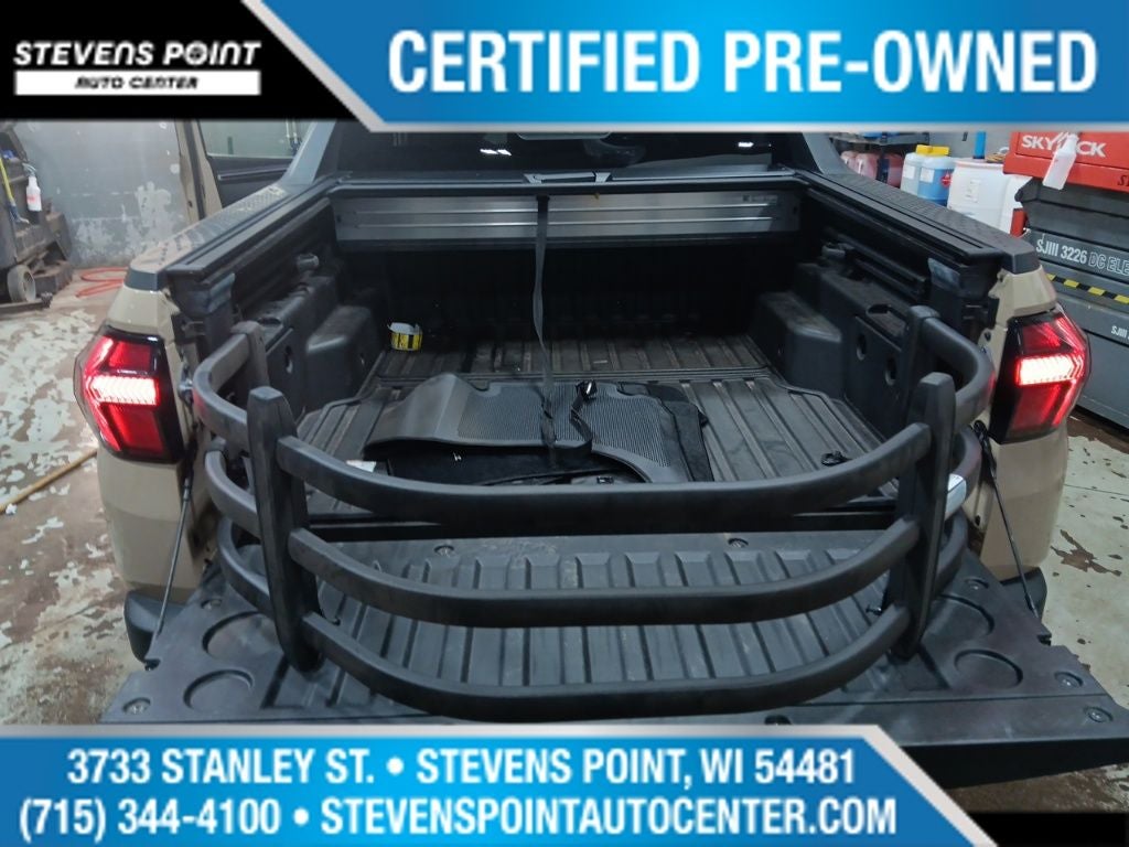 Powered by a 2.5L I4 engine and an 8-Speed Automatic with SHIFTRONIC transmission, this all-wheel-drive Santa Cruz delivers a smooth and confident driving experience with an EPA-estimated 21 city/25 highway MPG. Enjoy the convenience of advanced features like the 10.25 digital instrument cluster, wireless phone charging, and a powerful 115V AC power inverter in the bed for all your on-the-go needs.
